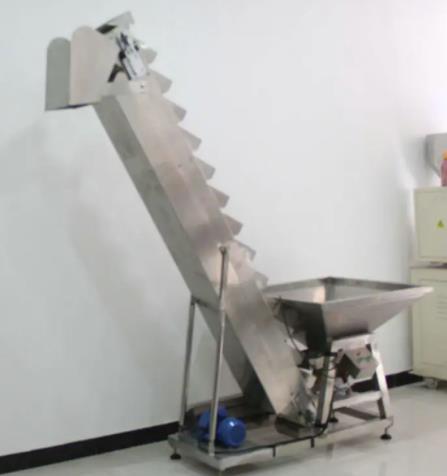 斗式上料機(jī)主要由牽引構(gòu)件(橡膠帶或鏈條)承載構(gòu)件(料斗)頭輪和底輪、驅(qū)動裝置、張緊裝置、機(jī)殼等組成。閉合的牽引構(gòu)件環(huán)繞于頭輪和底輪上,并被張緊裝置張緊。牽引構(gòu)件的全長上,每個一定距離裝置一個料斗。為防止物料的拋撒和灰塵飛揚(yáng),這些運(yùn)動的部件用機(jī)殼封閉。工作時,外部的驅(qū)動裝置通過頭輪帶動牽引構(gòu)件和料斗運(yùn)行。物料從機(jī)座的進(jìn)料口進(jìn)入機(jī)座底部,被運(yùn)動著的料斗挖起并向上提升。到達(dá)機(jī)頭后,物料再重力和離心力的作用下脫離料斗,從卸料口排出。